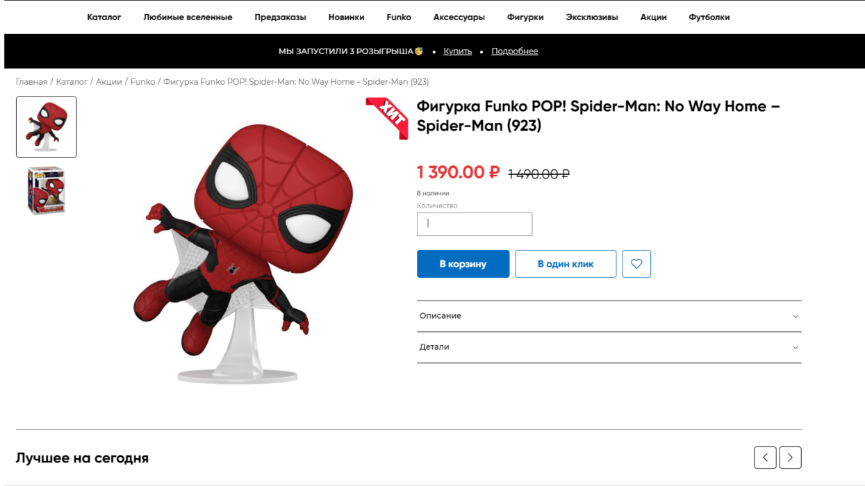 Мы продумали все: трекер заказа, история, вишлист, игровая механика для стимулирования продаж. Например, можно стать человеком-пауком и получать бонусы.