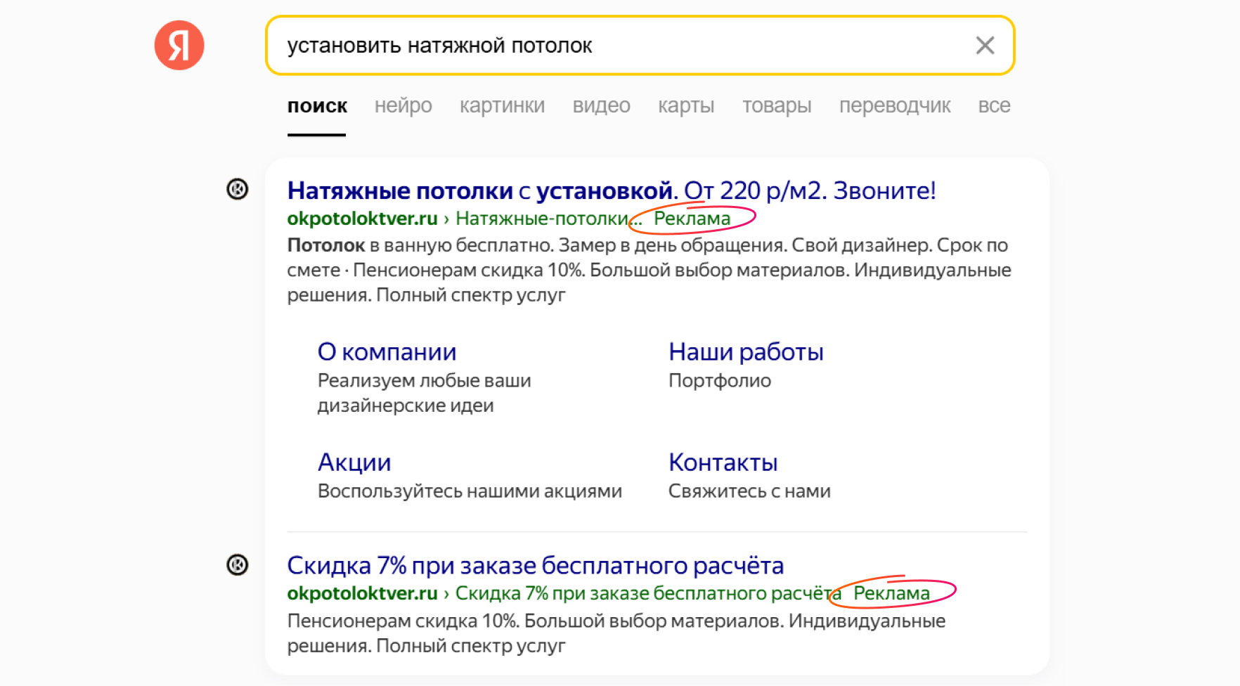 Наш клиент – компания «ОК’Потолок», предоставляет услуги по установке натяжных потолков в Твери более 7 лет.