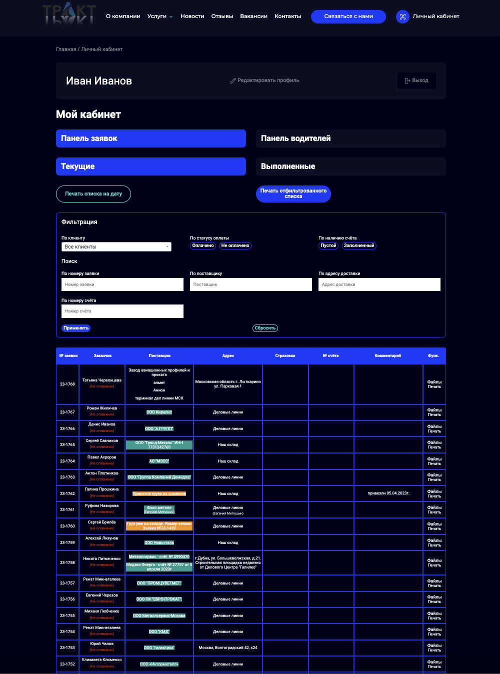 - Личные кабинеты